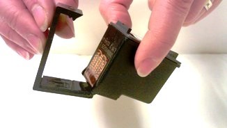 - V případě, že tiskárna nerozpozná vloženou kazetu, nebo ji odmítá, může uživatel použít gumu nebo hadřík namočený ve vodě nebo čisticím prostředku na bázi lihu, k očištění měděné pásky s plošnými spoji (obr.4) od případných nečistot nebo usazenin. Je dobré zkontrolovat i kontakty v tiskárně a v případě jejich znečištění je rovněž šetrně otřít.