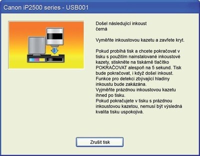 • při hlášení o nedostatku inkoustu nerušte tisk